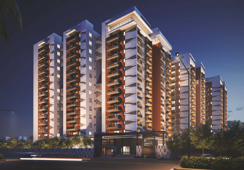 IRA Miracle is a premium 3 BHK apartment project by IRA Realty in Kollur, Hyderabad. The project spans approx 3 acres and comprises a single tower of 274 units. The configuration is exclusively 3 BHK (sizes from ~1,655 sq.ft. to ~2,455 sq.ft.), targeting families seeking spacious living with high-amenities in a growing residential zone.