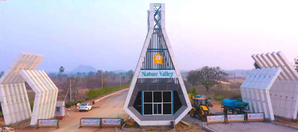 JB’s Nature Valley is presented as Hyderabad’s first eco-friendly satellite township by JB Infra. It is large scale, featuring thousands of plots, broad roads, cycling tracks and green-oriented design.