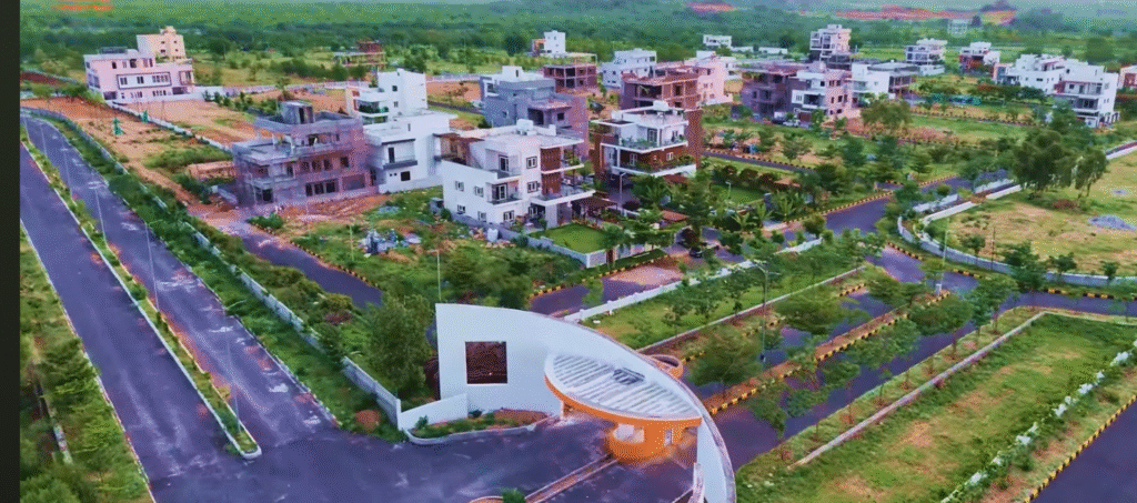 Good connectivity: near major roads, and beneficial for those working in and around Hyderabad who want plotted/villa land at the periphery.